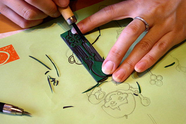 アートカッターで彫る場合は消しゴムのほうが、彫刻刀で彫る場合、ゴム板のほうがいいような気がします。